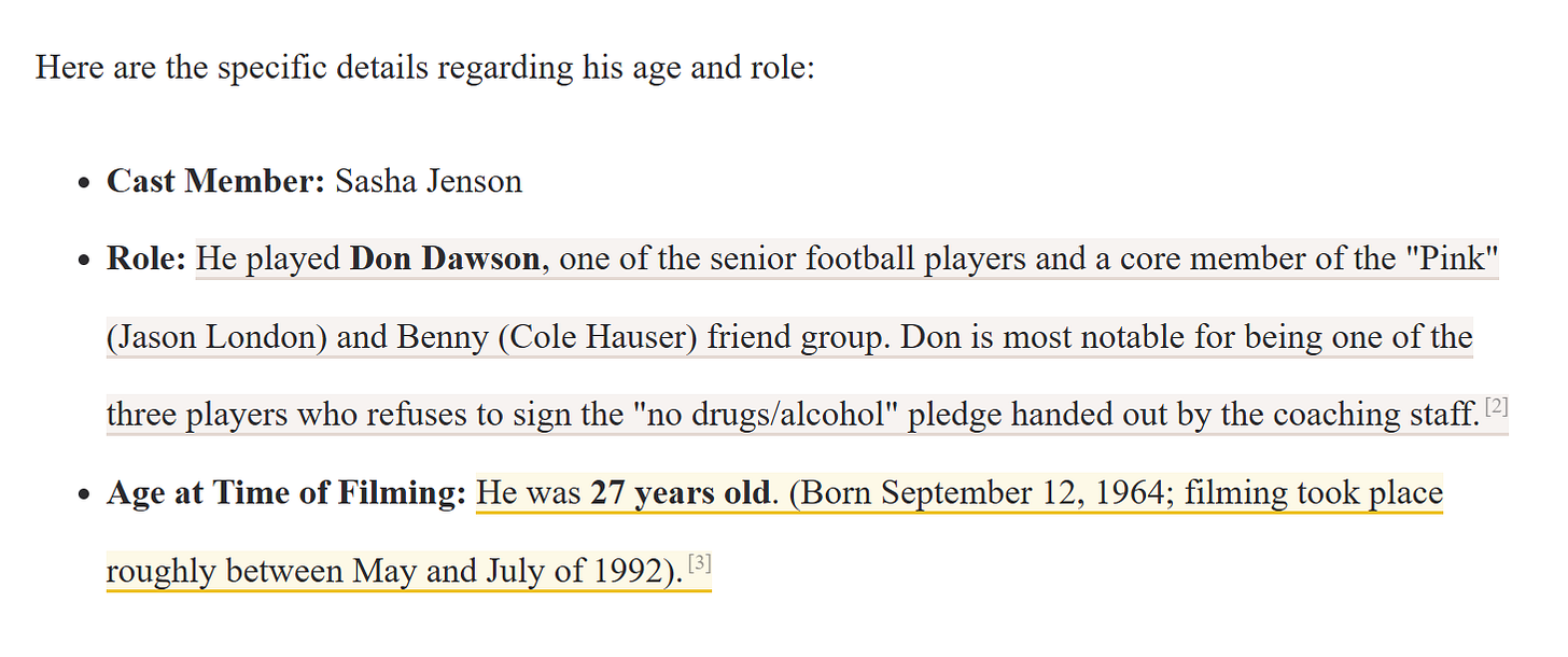 On Dazed and Confused, did you supply a definition of "cast" as the top x named characters? A birthdate in the 1960s didn't sound right to me, as I vaguely remembered some scenes with teachers in them. Wouldn't there have been some teachers who were older?