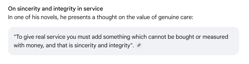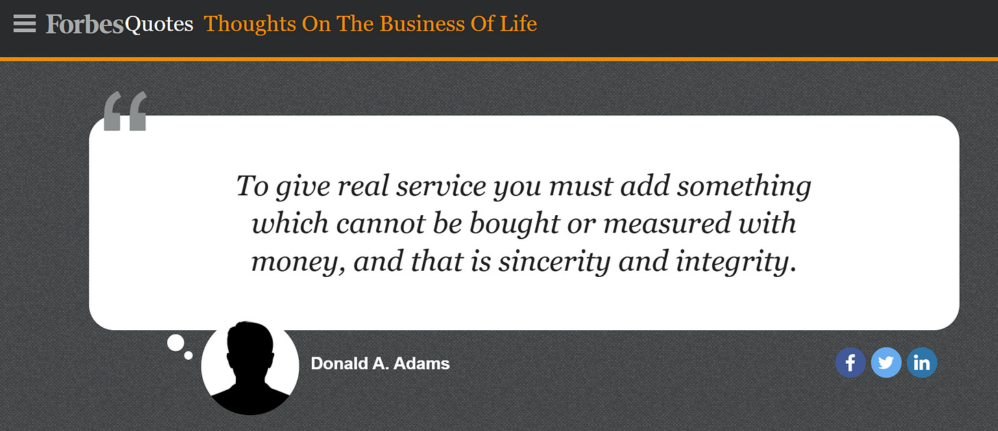 “To give real service you must add something which cannot be bought or measured with money, and that is sincerity and integrity”