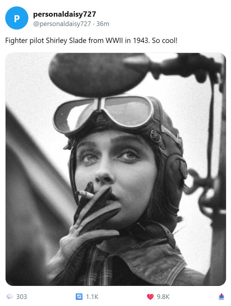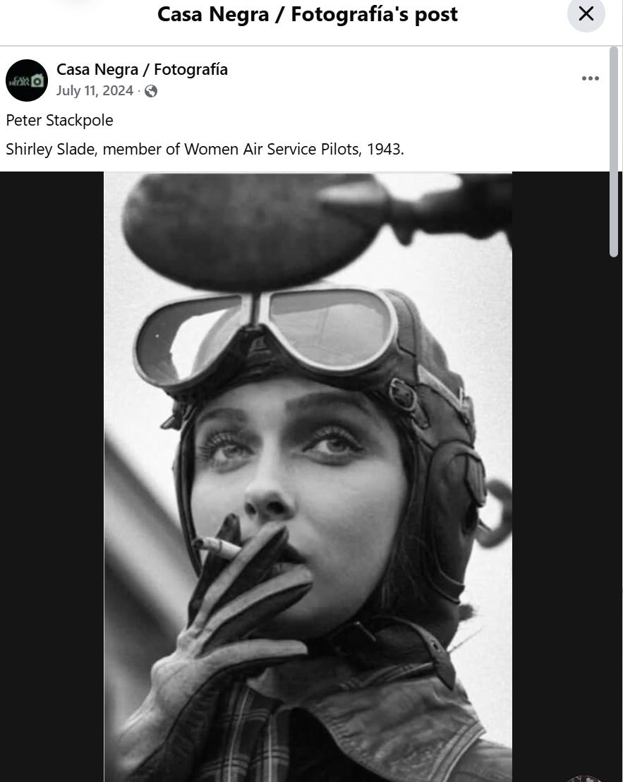 This is not an image of Shirley Slade, a pilot from WWII. It is an image of model Casey Drabble, on a photo shoot in 2016.1