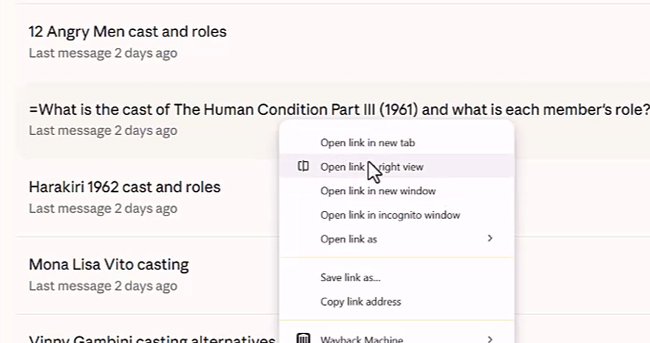 You can keep doing that, which in this case allows me to go through a list of links without constantly trying to remember after I close a tab what the last link I clicked was. To close the right view, click the tiny “x” at the bottom of your window…